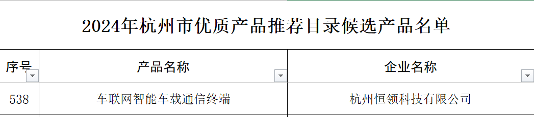 恒领科技车联网智能车载通信终端入选2024年杭州市优质产品推荐目录